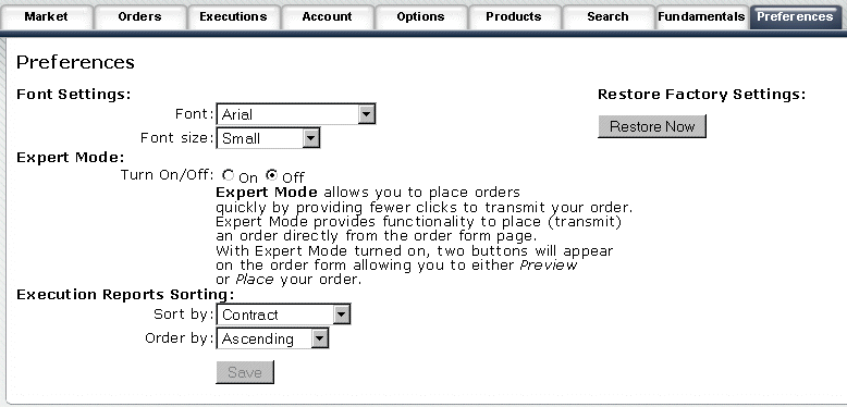 To submit orders quickly, set your mode preference to Expert Mode. This adds a button to the Order Management screen which lets you Place Order without previewing.